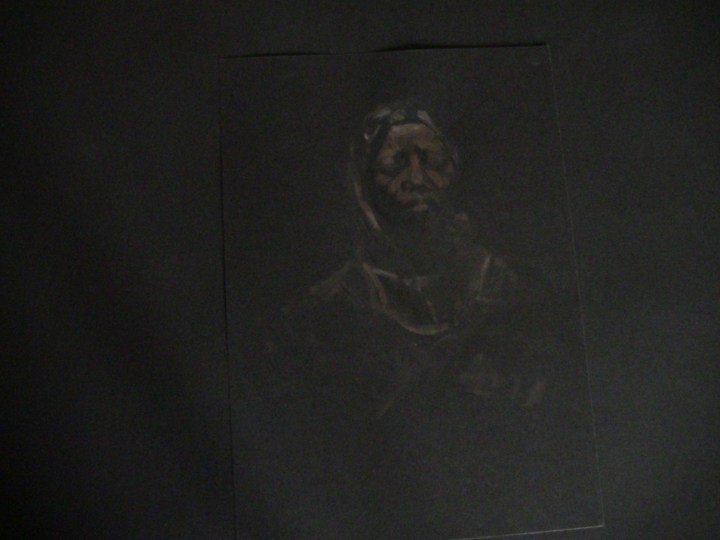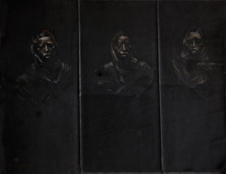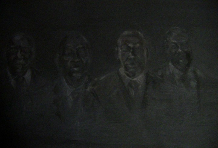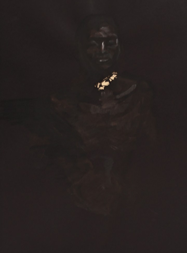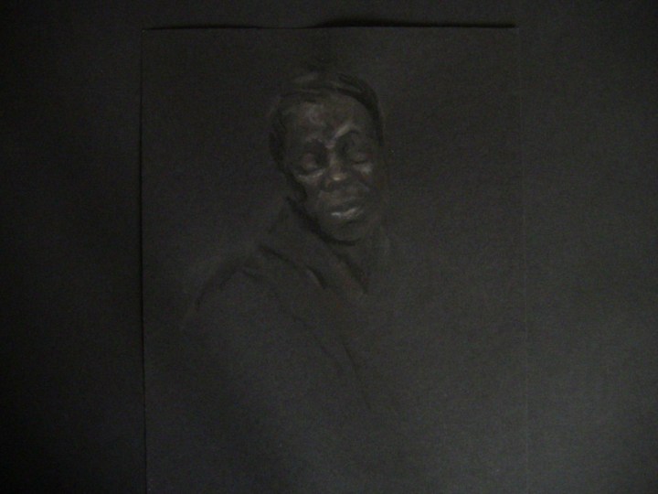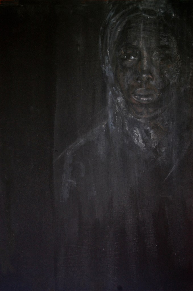 La dificultad de visión de estas pinturas invita a meditar el porqué de la invisibilidad de la raza negra a lo largo de los años. Estas pinturas están realizadas con gouache y grafito. Como soporte papel y lienzo.